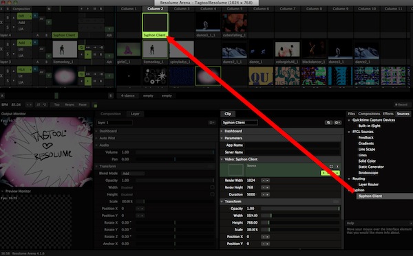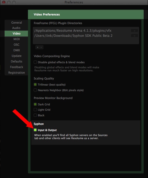 To finally receive the Tagtool output in Resolume Arena just enable the built-in Syphon module within the Preferences>Video Preferences.
