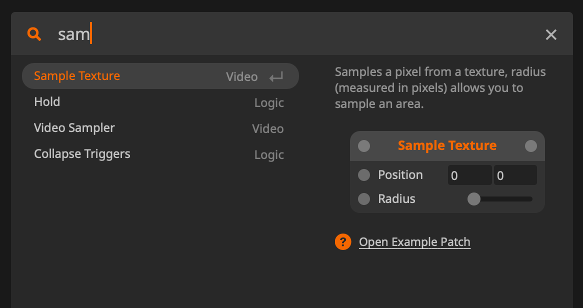 To help you quickly find the node you're looking for, the search popup now shows a full-scale preview of the node with all its inlets and outlets.