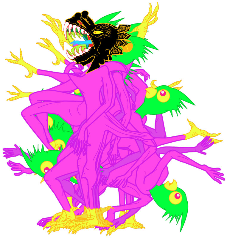 The concept for the project came first, which then spawned many visual and musical ideas. The narrative form and the fact that it needed to be a live music show, meant that there was already a lot of structure imposed before I had started on the musical or visual specifics – for example, I knew that humans were eventually going to emerge later on in proceedings down the universe timeline, and that things were going to start to get darker as complex forms of subjugation, and the like, came along.