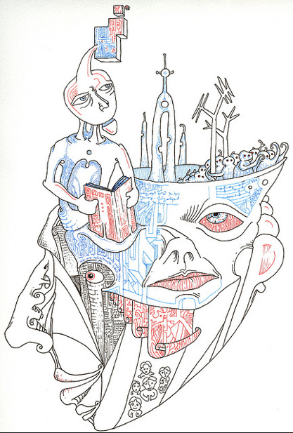 I've always been a very visual thinker, and spent a lot of my time when I was younger tuning out of school and drawing elaborate, psychedelic pictures [see below]. Actually, I still draw pretty frequently, and am in the process of putting together a book of my sketches. Drawing was my first love, but I never felt confined to any medium. I love all the possibilities that CG brings into the mix; painting, music, writing, it all interesting to me deeply. Different mediums bring different things out of you, and lend themselves to different kinds of exploration.