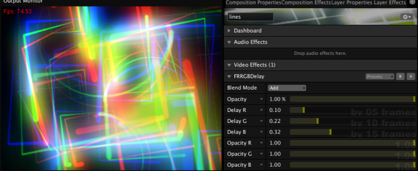 And then to top it all off, gpvillamil points us to a new source of FFGL goodness. The folks from 1210 Visuals pop up out of nowhere, and drop four FFGL bombs on your plate. For starters, there's two full fledged effects, including a very *very* handy separate clip properties plugin. And if you really can't get enough there's already two effects in beta, including a very tasty RGB delay plugin.