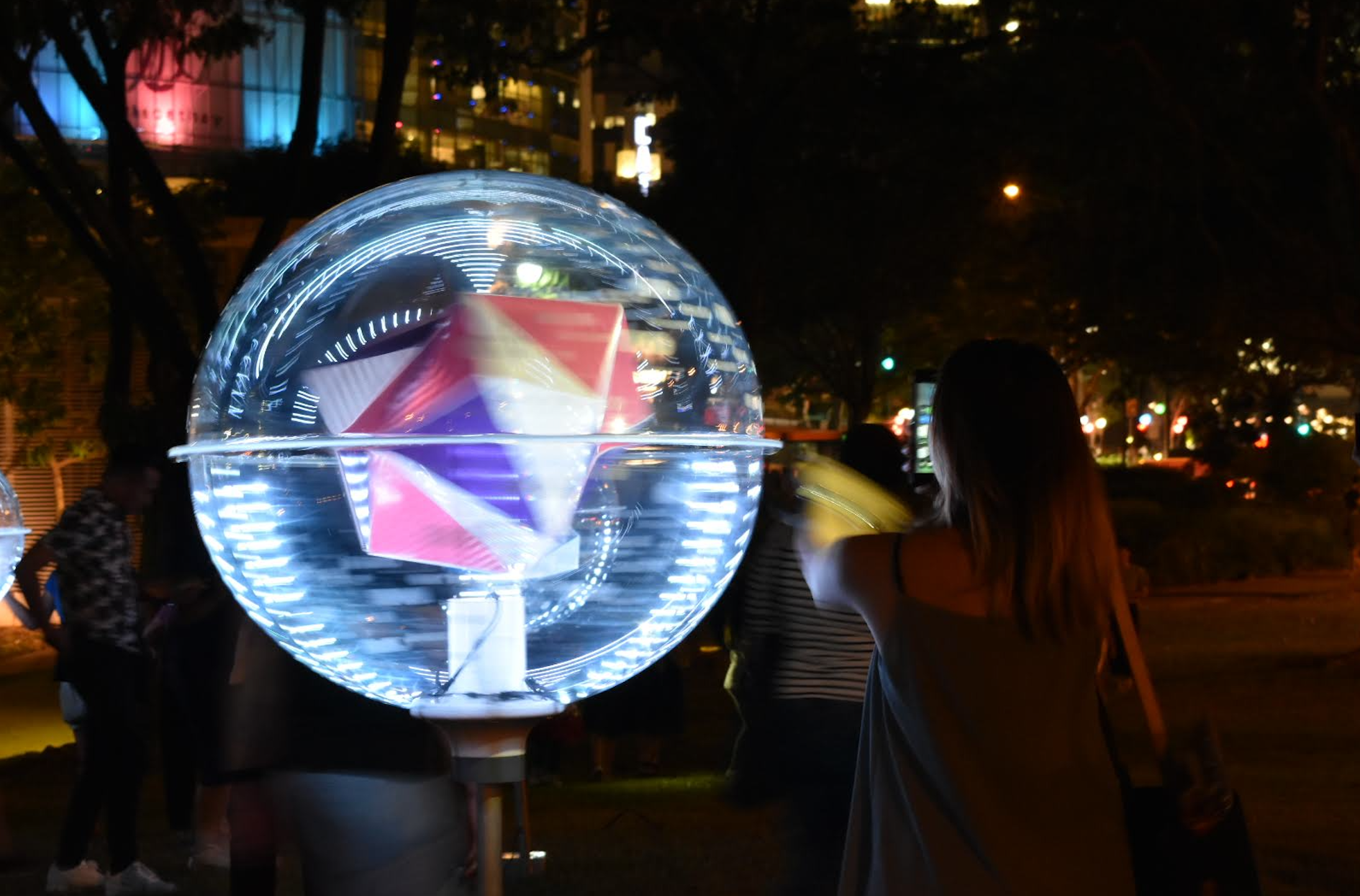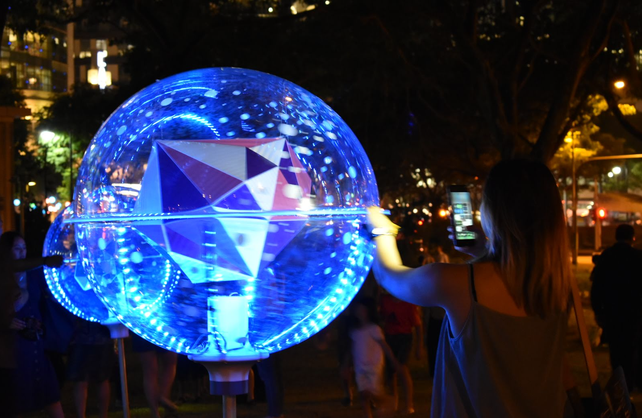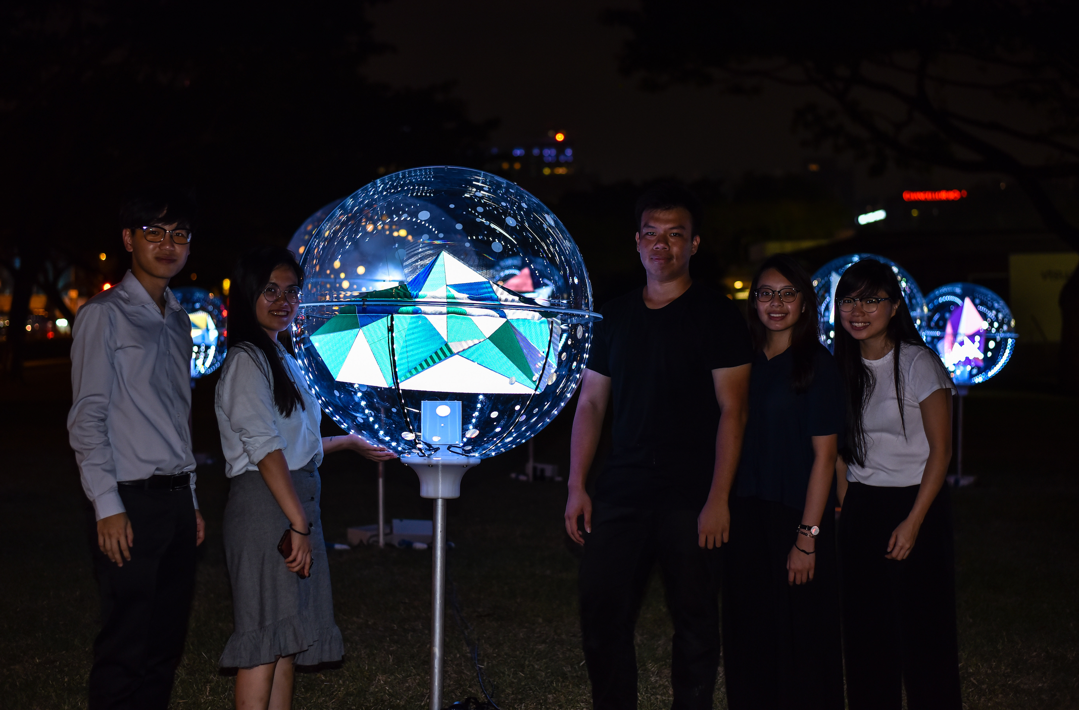 Linking everything wirelessly gave us a lot of convenience, but of course we had to deal with the downside of using WiFi. We noticed that when the festival got crowded, the micro-controllers tend to disconnect from the network, and would freeze on the last received ArtNet frame. We then had to power cycle these frozen micro-controllers from time to time. It could have been interference from mobile phones with their WiFi and Bluetooth turned on, or because our low powered WiFi router was not equipped to deal with 10 simultaneous connections (1 server, 9 spheres).