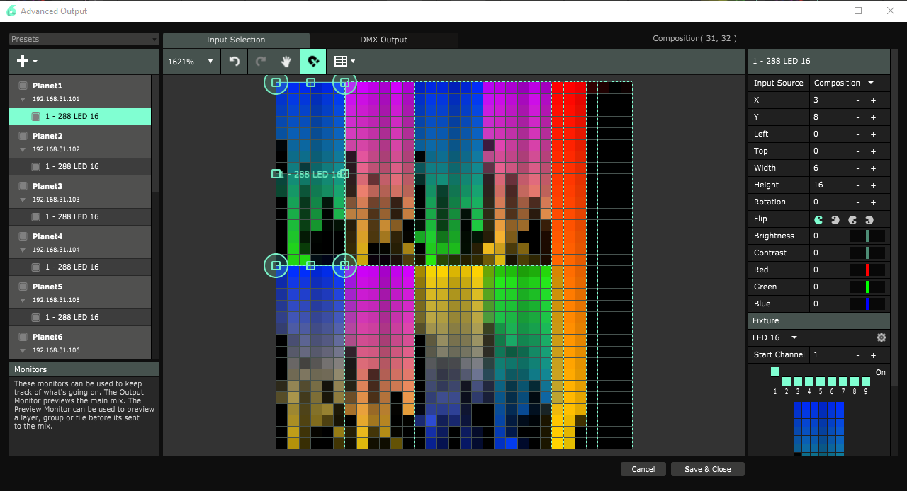 We could have used code to run the entire installation, but the workflow of using After Effects to design the sequences, and Resolume to pixel map and convert this video into ArtNet, gave us the ability to quickly visualize new sequences.
