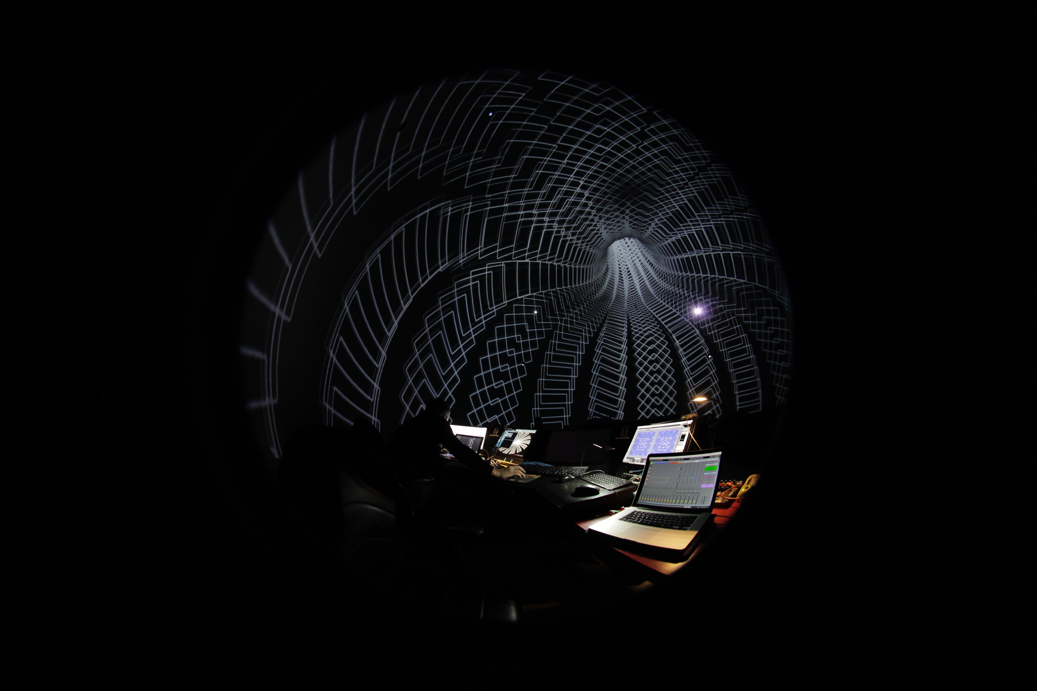 The concept for the project came first, which then spawned many visual and musical ideas. The narrative form and the fact that it needed to be a live music show, meant that there was already a lot of structure imposed before I had started on the musical or visual specifics – for example, I knew that humans were eventually going to emerge later on in proceedings down the universe timeline, and that things were going to start to get darker as complex forms of subjugation, and the like, came along.