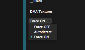 There are some caveats, so by default it's still turned OFF. You can let Resolume detect if your computer supports DMA by setting it to Autodetect. There are a few edge cases where it might work, even though we can't detect it (the Mac Pro with its dual GPUs for instance). In those cases, you can force Resolume to use it by turning it ON.