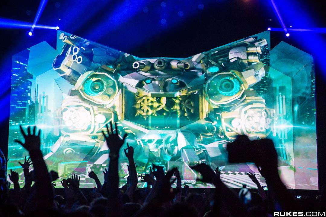 “Yes you are correct, our DJ booth is motorized and actually controlled by Jeff(Excision). We make sure to have different animation looks set for each song depending upon the booth state. This is a custom stage piece that was created when the Paradox was first designed. Everything of the set has been custom designed down to the mounting system for our LED panels. Our specifics are so rigid that Dave Hauss of the Hauss collective had to engineer everything down to the nuts and bolts.