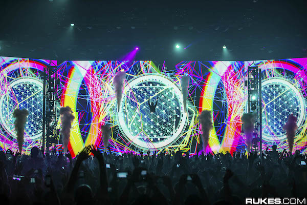 Video content has always been the central focus of the Zedd show (and I'm NOT just saying that because I'm a VJ!!). For the True Colors Tour we wanted to give fans the most immersive experience possible, so the design we landed on was pretty much a giant 84 foot wide LED wall, framed with all sorts of light fixtures, lasers, and special effects. We were able to use an LED wall that was fully 4K in width - a dream come true for any pixel pusher. It's been really exciting to watch the rapid development of LED technology in recent years. Bigger walls, higher resolutions, soon I'm sure we're going to be watching shows in retina quality! In the five months leading up to the start of the tour, we worked closely with Beeple (Mike Winkelman) to create the bulk of the new show visuals rendered in stunning 4418x1080 resolution. Scott Pagano and myself also contributed to the content push, which enabled me to curate an entirely new Zedd visual show from our previous tour.