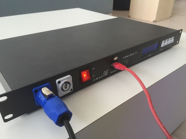 On the SJ-DMX-E16, things weren’t so complicated. It has a little onboard menu display where you can set things like the IP address, and once we figured that you need to turn it off and on again to have these changes take effect, we were blasting pixels in no time.