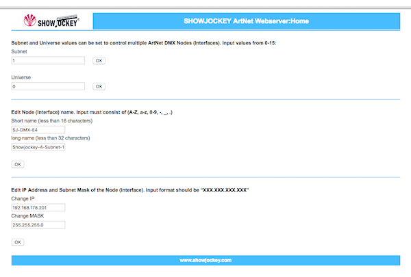 All in all, the beauty of Art-Net is that once you actually have it working, it’s pretty rock solid. You can hot plug power and DMX cables, and the LEDs will just pick up right where they were. The Showjockey devices work with a web interface, which is a great way to configure the device without the need for additional software. It’s also worth to note that the SJ-DMX-E16 can be configured both via the onboard menu and the web interface, and changes on one end will be picked up on the other.