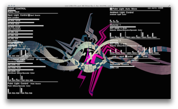 I recorded a song I wrote in Ableton and setup a number of Network Midi tracks to send data to my ofApp. I then paint notes that drive the animation. The network midi sends trigger data directly to ofApp. Additionally I send minimal OSC messages to change scenes in my app.