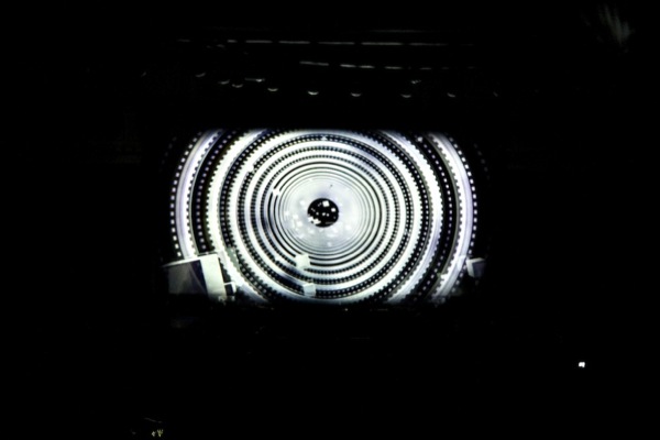 The visuals by Strangeloop and Timeboy are nice. The abstract images on the screen in the back and the more detailed animations on the screen in the front work very well together with the music, perhaps a little bit dense at times but it´s definitely a good show all together. The two-screen setup is simple, but effective. We love it when it it's kept simple, you focus more on the total experience of the show.