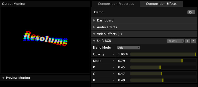 This effect has different modes for displacing the RGB channels in the video.