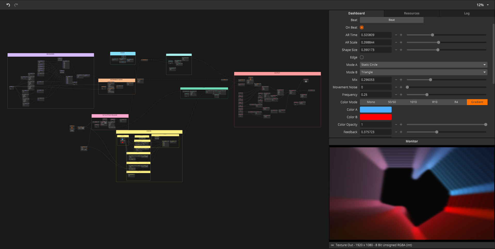 Using blur and a big feedback loop I am able to create more complex visual patterns.