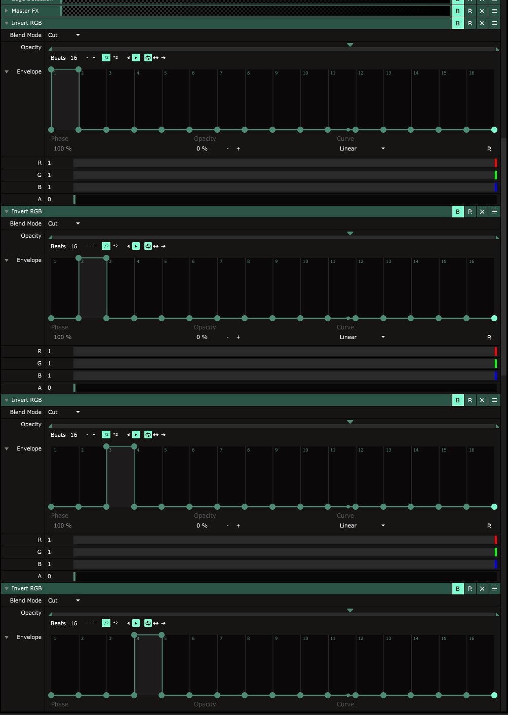 Inverrt RGB is Active on the first BPM and Inactive on the next 3 bpm