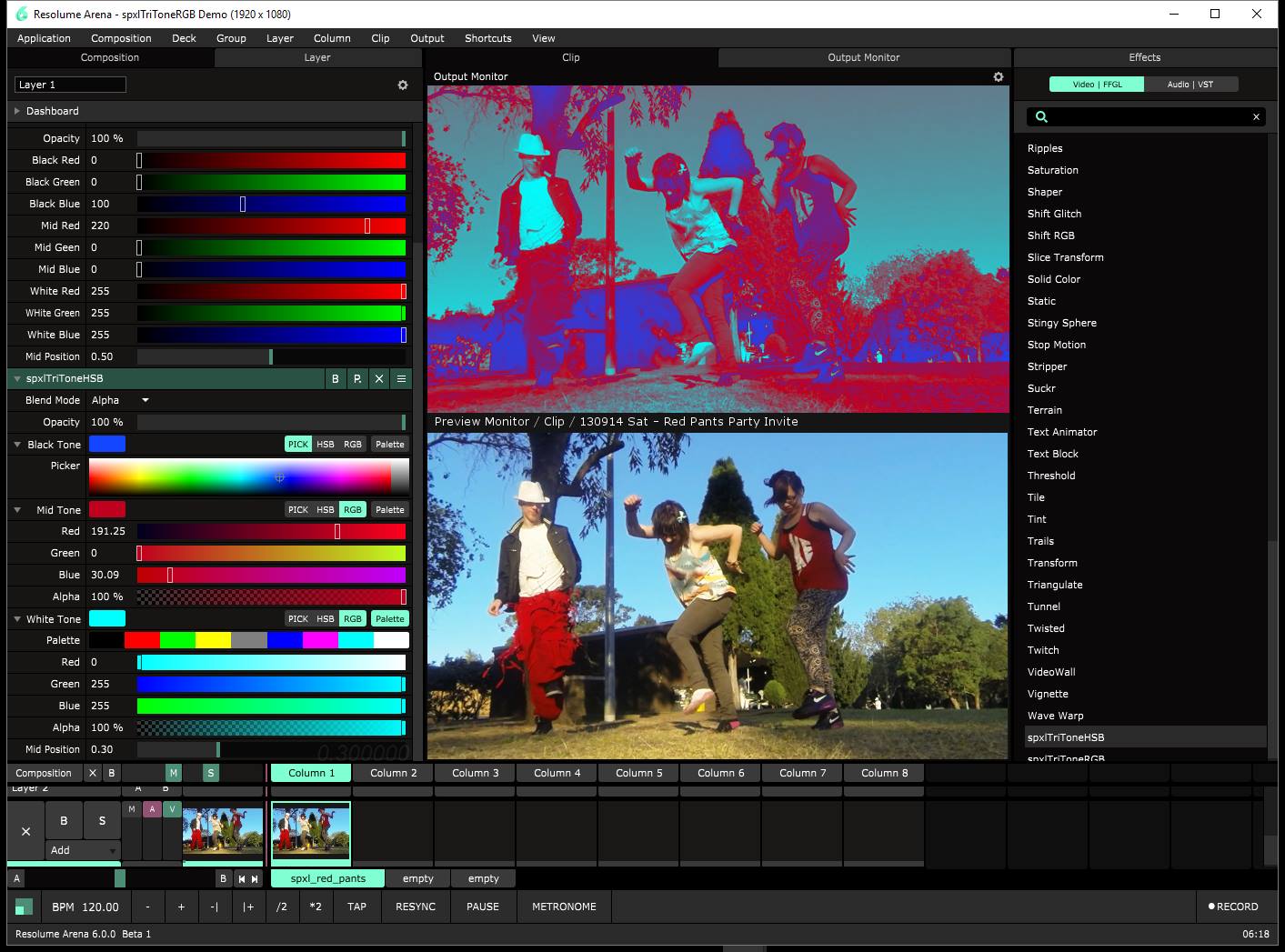How would it handle multi colour pieces of content? Would the effect add more bars, would it average the colours? Would red blue white be an easy thing for it to average? How much of a performance hit would we as VJs allow? Delay RGB level or something more intense? Would it scan every pixel? every other? a grid of the layer?
