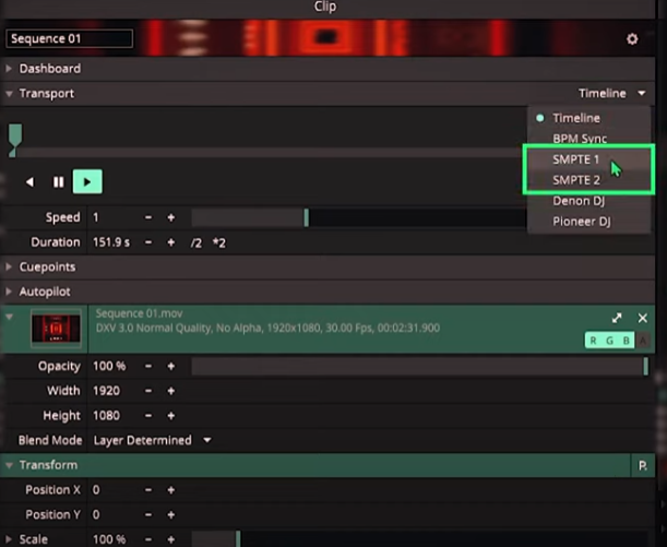 I must be doing something silly here, because I can't seem to find a way to select SMTPE under the clip transport options. I have tried the lastest version of resolume as demo, as well as my older 7.3.2 version with a full license.