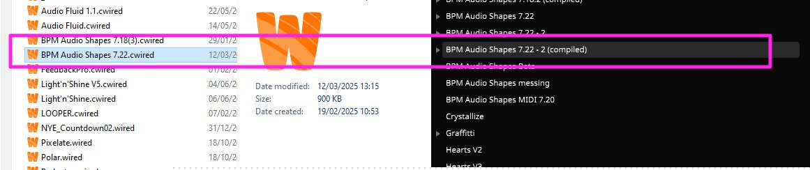 The fact that they automatically appear in Resolume is already a problem, as it clutters everything. As I add digits to my versioning, I end up with 20 files for the same Wire patch in the Resolume interface.
