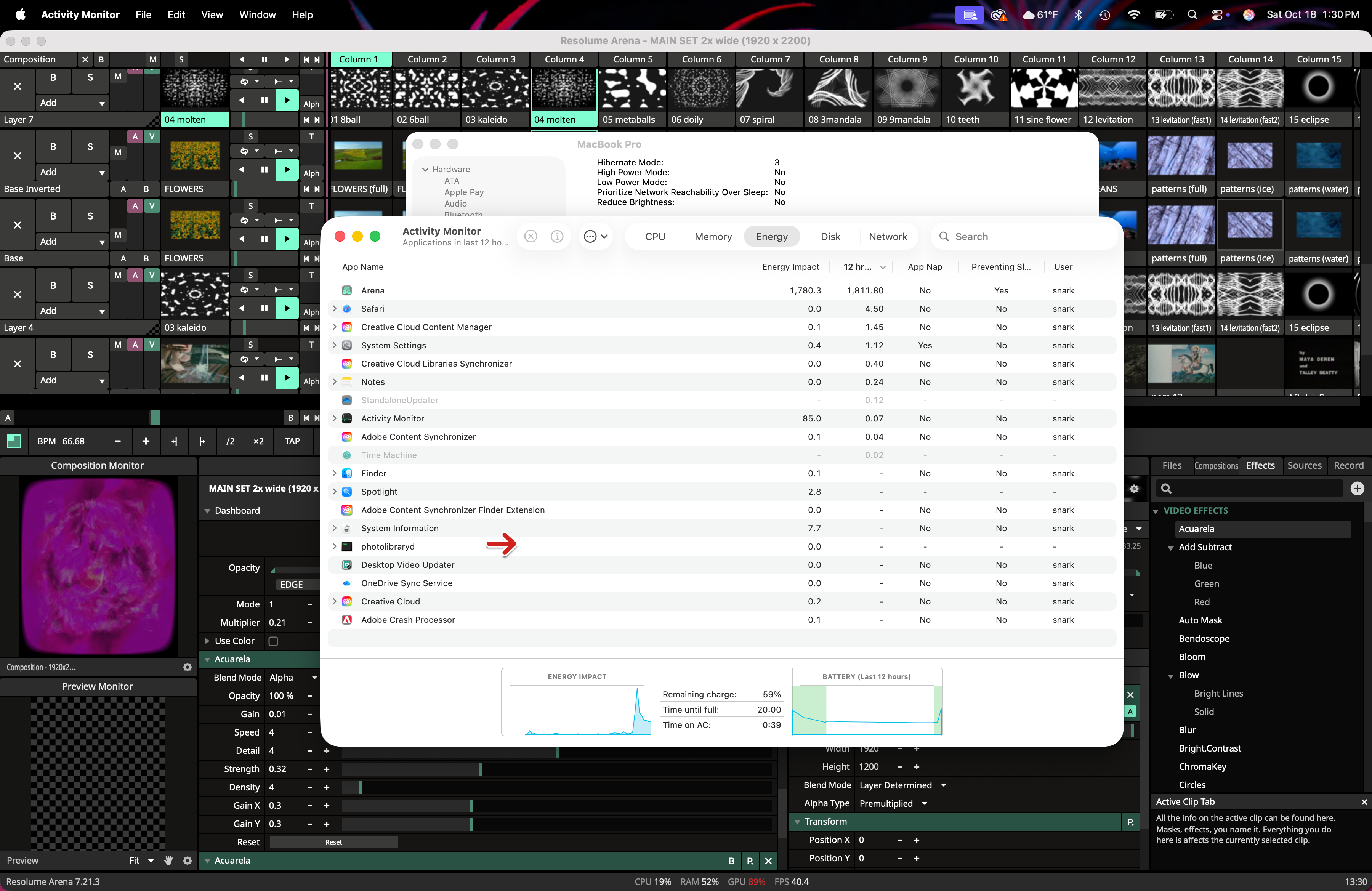 Just got a new 14" M4 Max. While running my effects-heavy composition, the battery slowly drains down to zero while plugged in to the original charger. Apple engineers blame the software, which I find to be ridiculous. The hardware shouldn't allow it to pull more power than it can take from its charger...