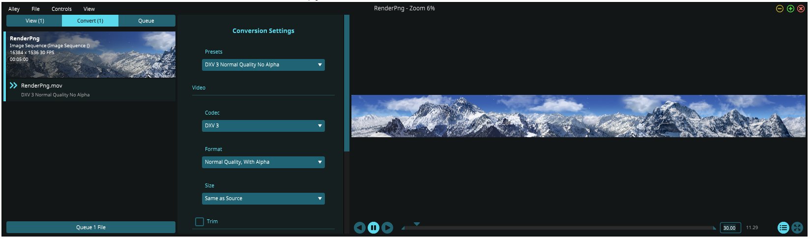 Hi guys! I need to export a DXV file from a PNG sequence. I'm trying to use Alley for the first time, and looks like there is no way to change the fps from 30 to 25.