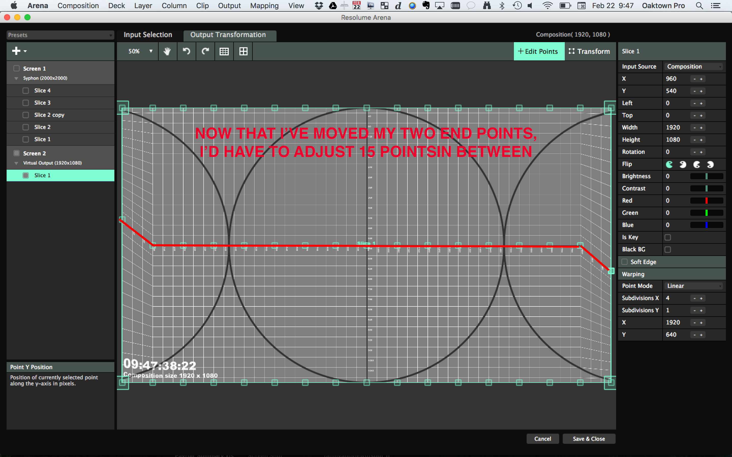 I would love to have the ability to add an X or Y subdivision in the Output Transformation>Edit Point>Warping option by double clicking (same as the bezier points for masks) so that I can add one or two X or Y subdivision wherever I want rather than have to subdivide by a larger number to get subdivision where I want.