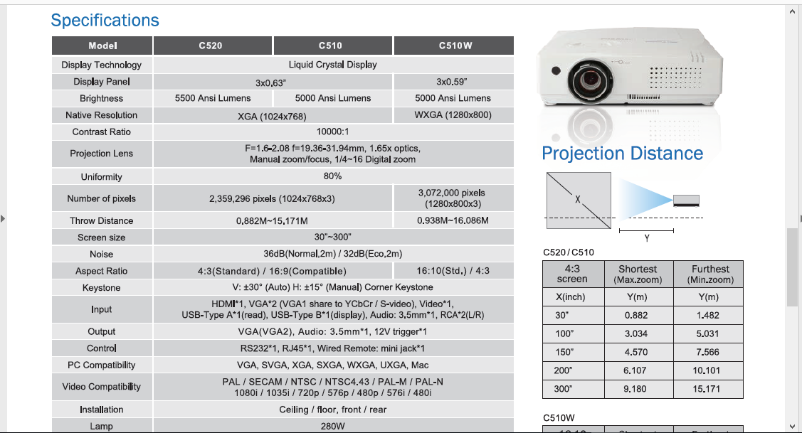 Please have a look at the attached Proxima C510W specs and advise if it is good enough to run video mapping at small/medium sized clubs. They are cheap and I want to try to buy at least four of them.