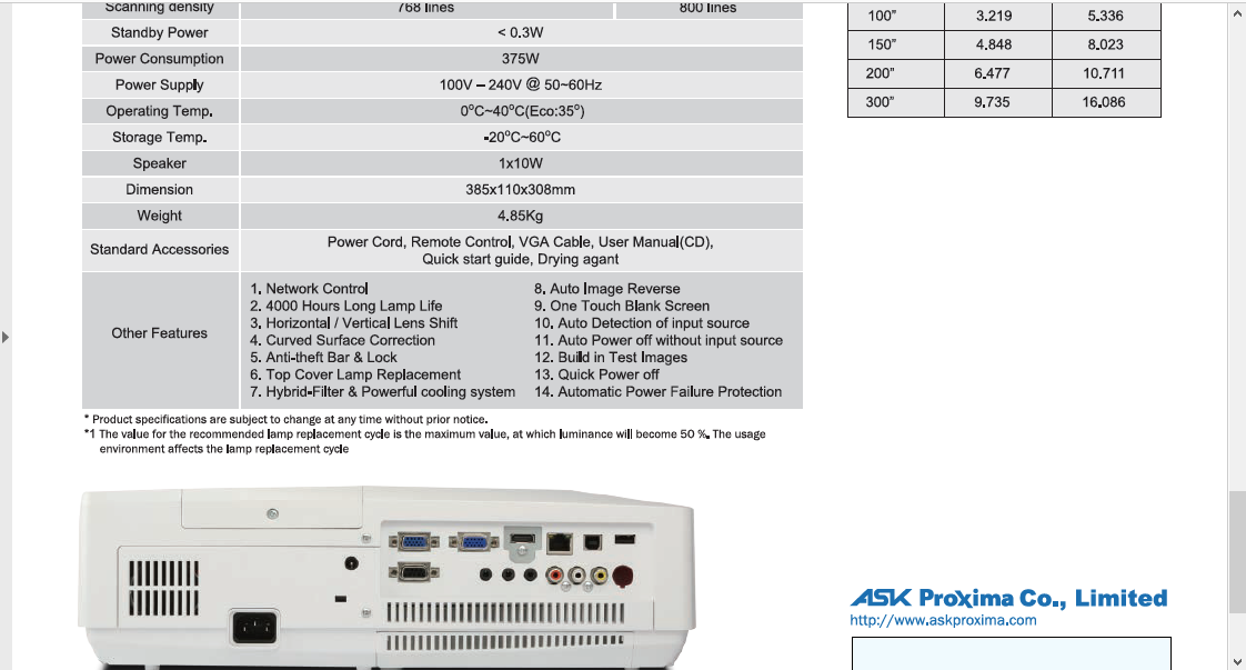 - It has H/W lens shift so it'll be flexible (+/-10% H and +/-40% V)