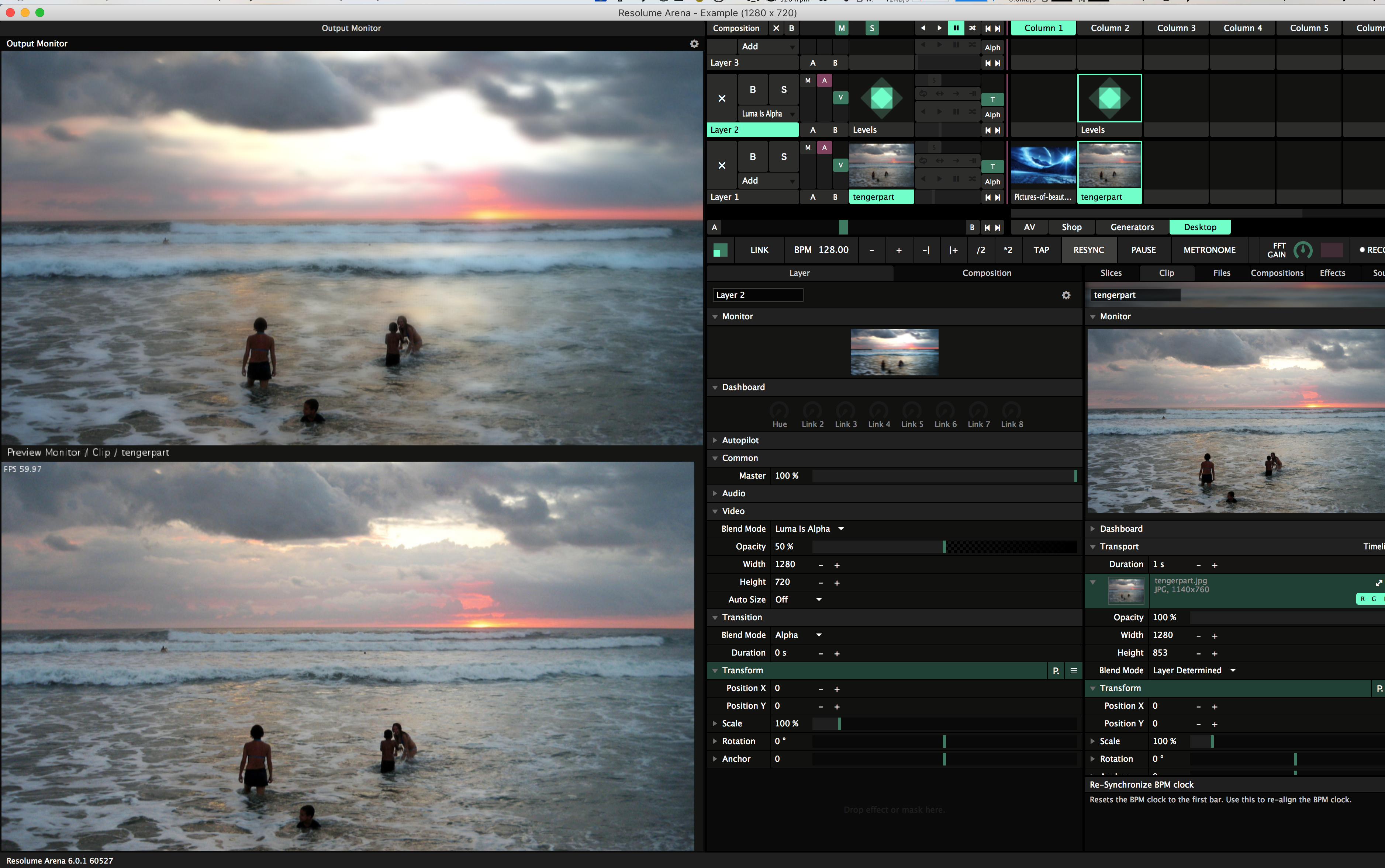 Or for better results, drop a levels effect to a clip slot, and drop a blur onto this clip, and set the layer's blend to 50% luma is alpha. Adjust Levels effect so image has more contrast.