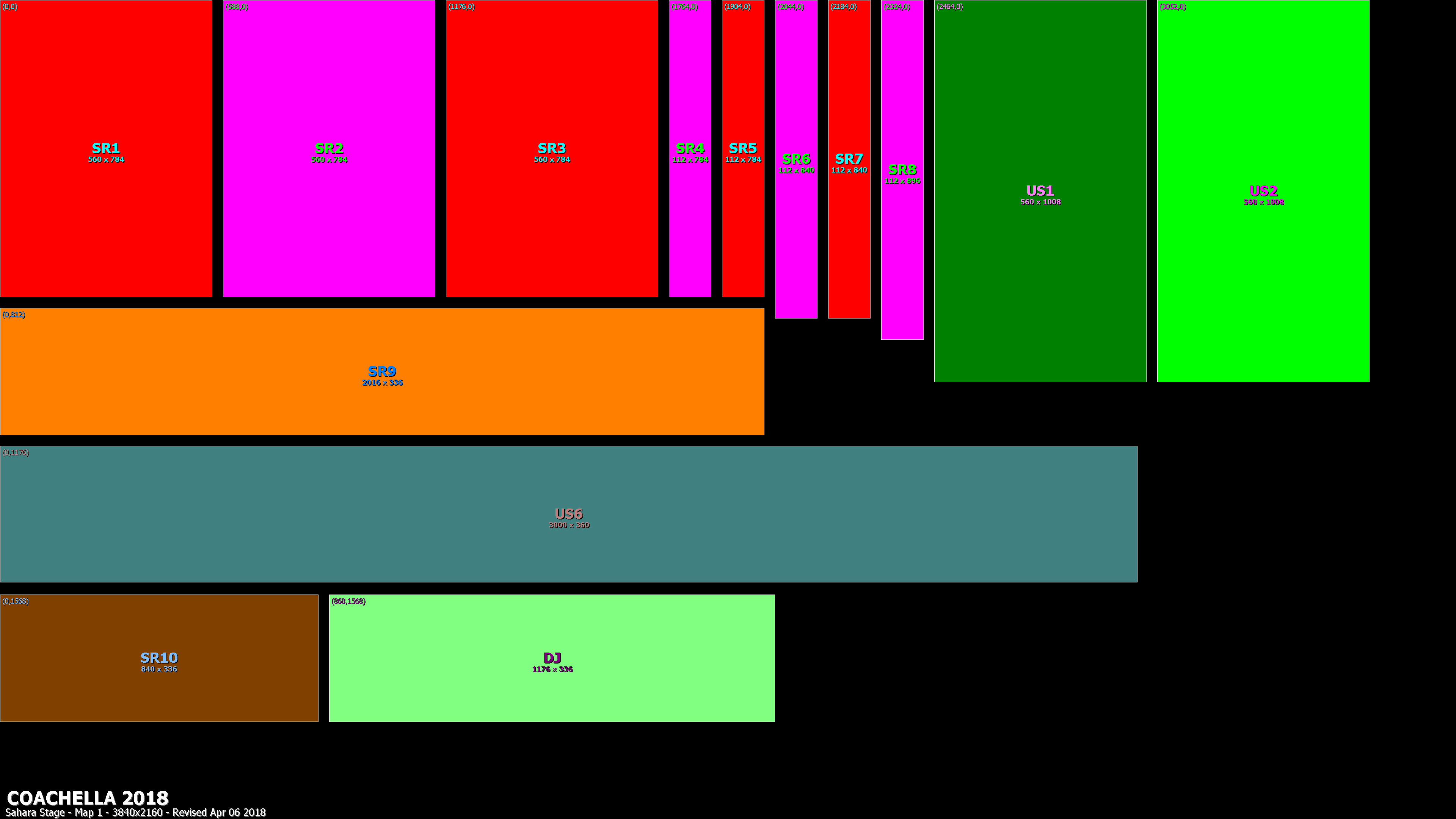 Here are the video map & pixel maps of the Sahara Tent at Coachella 2018: