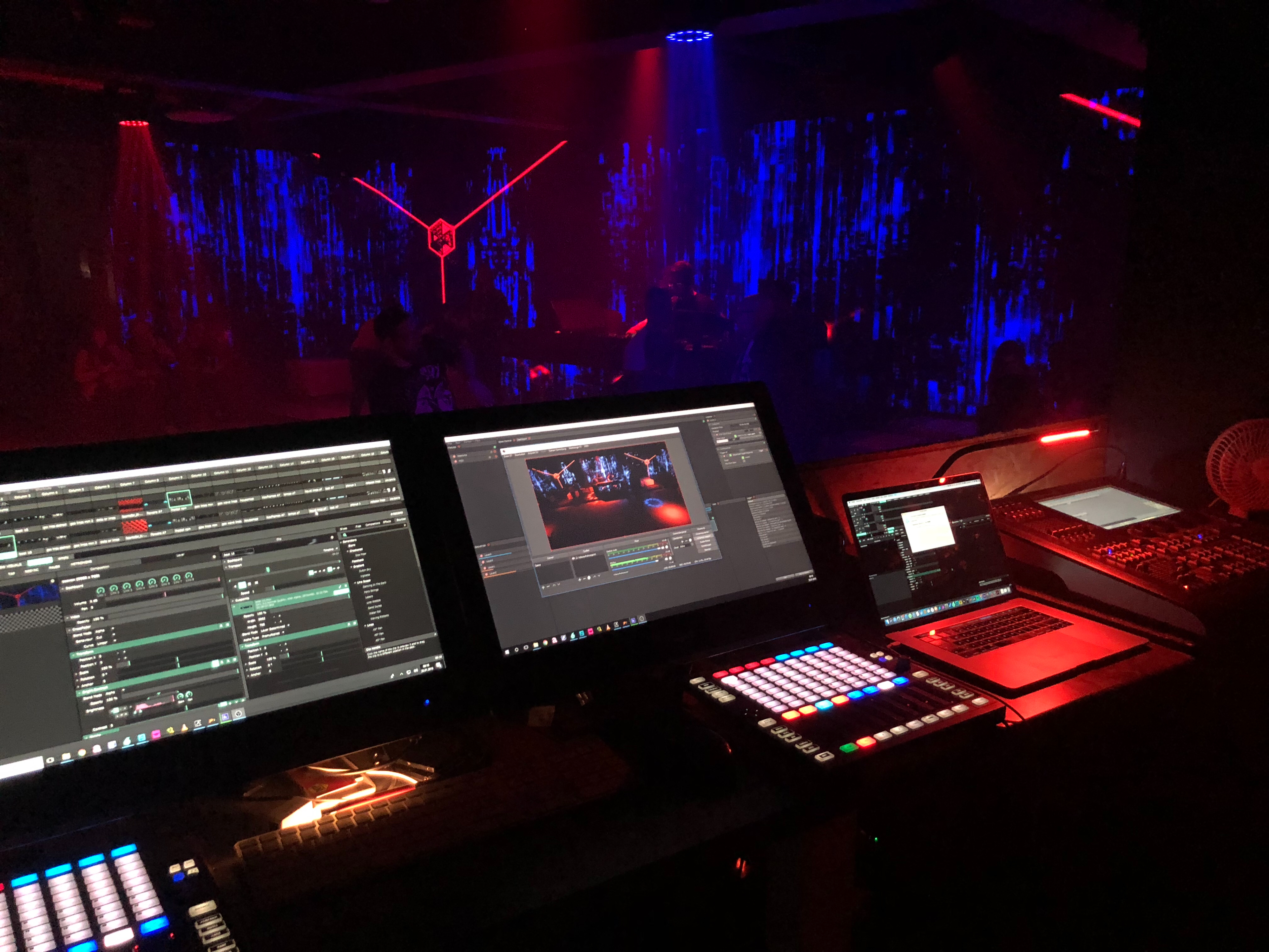 The recording of one of our theatre's plays, Resolume providing the 4 signage displays with input.
