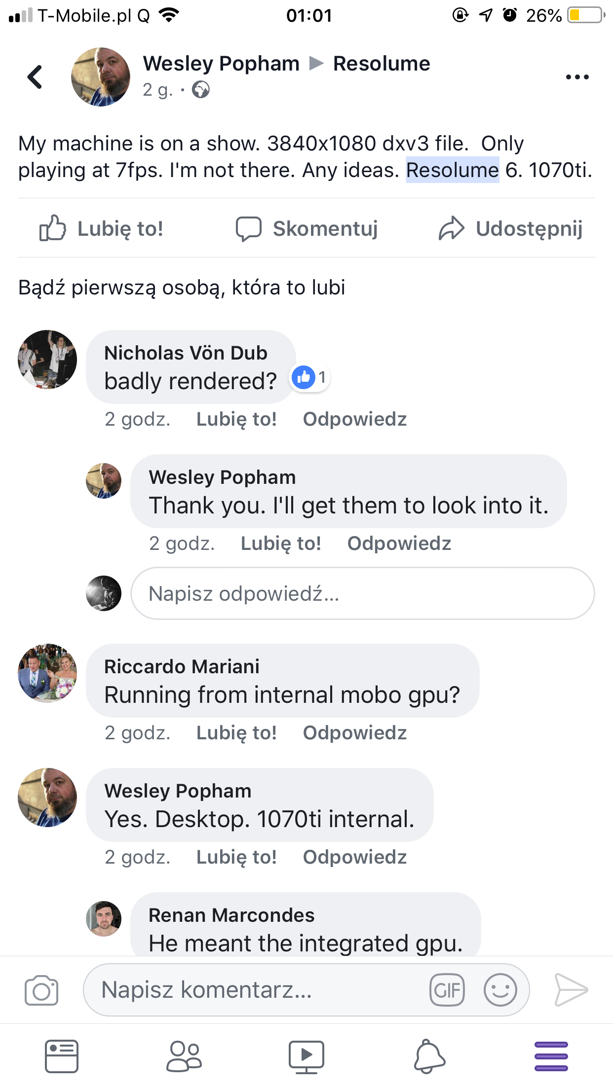 I sort of follow the FB page and see a couple of isolated cases but not that many people especially when you think about how many people use Resolume in the world! And then once again, the MBP you have is a different beast than a PC using a 1080ti so highly irrelevant.