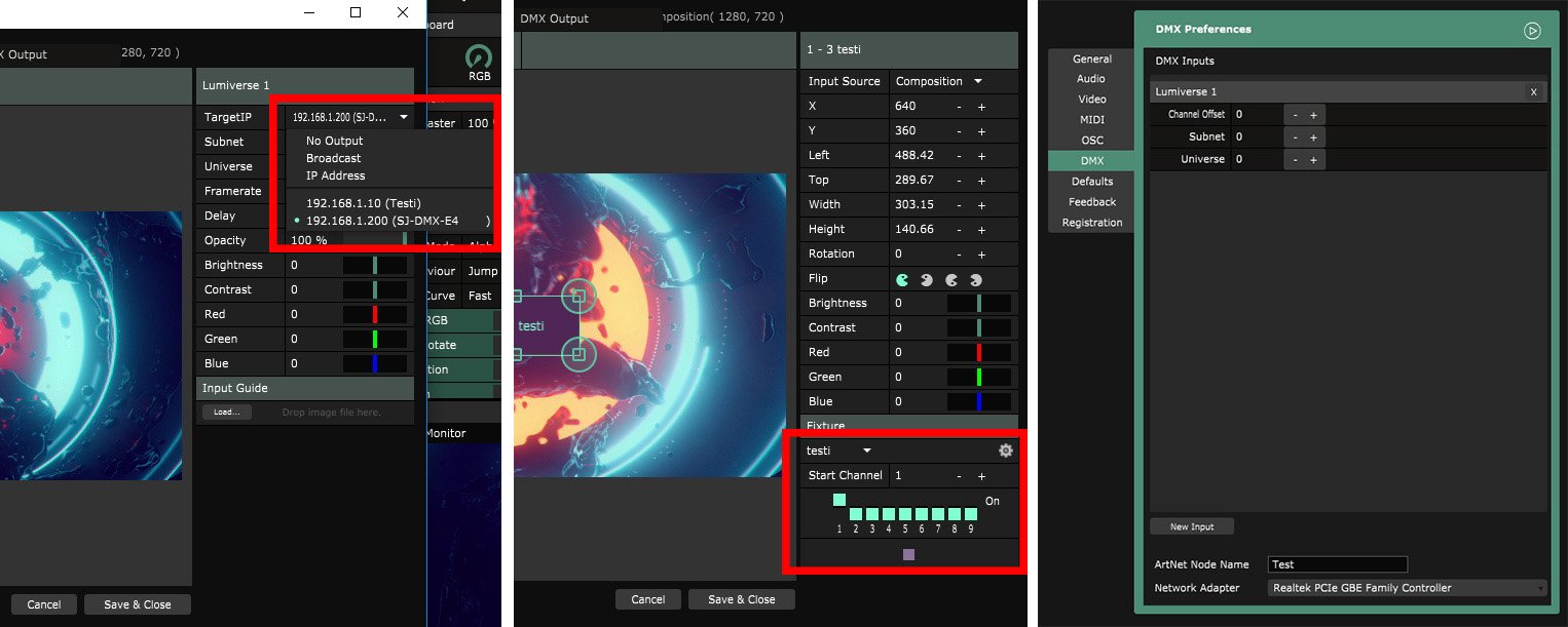 I have Resolume Arena 6, Showjockeys SJ-DMX-E4 dmx-artnet-interface and and Stairvilles RGB led bar (https://www.thomann.de/fi/stairville_le ... chwarz.htm).