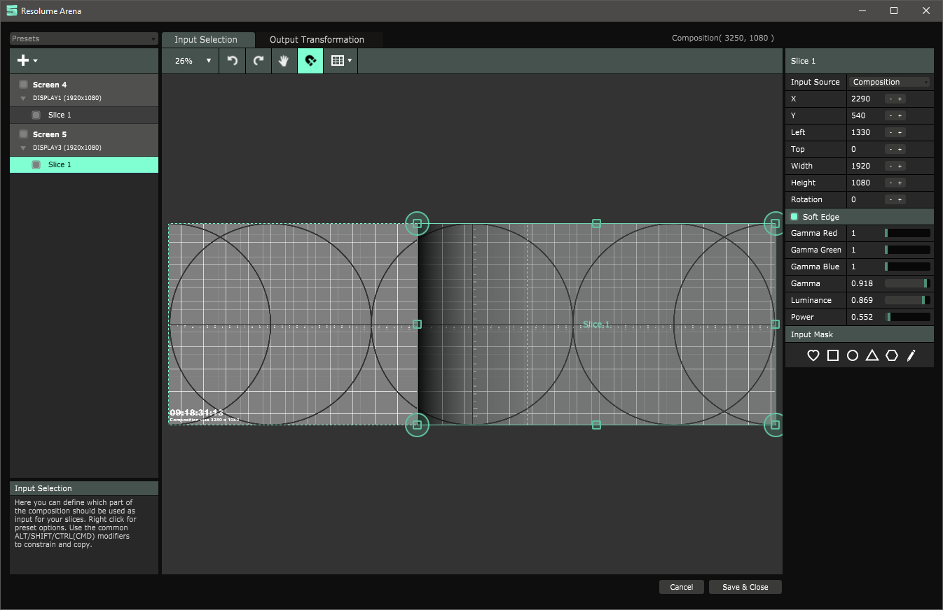 the overlaps are highlighted to make lining up slices in resolume easier.