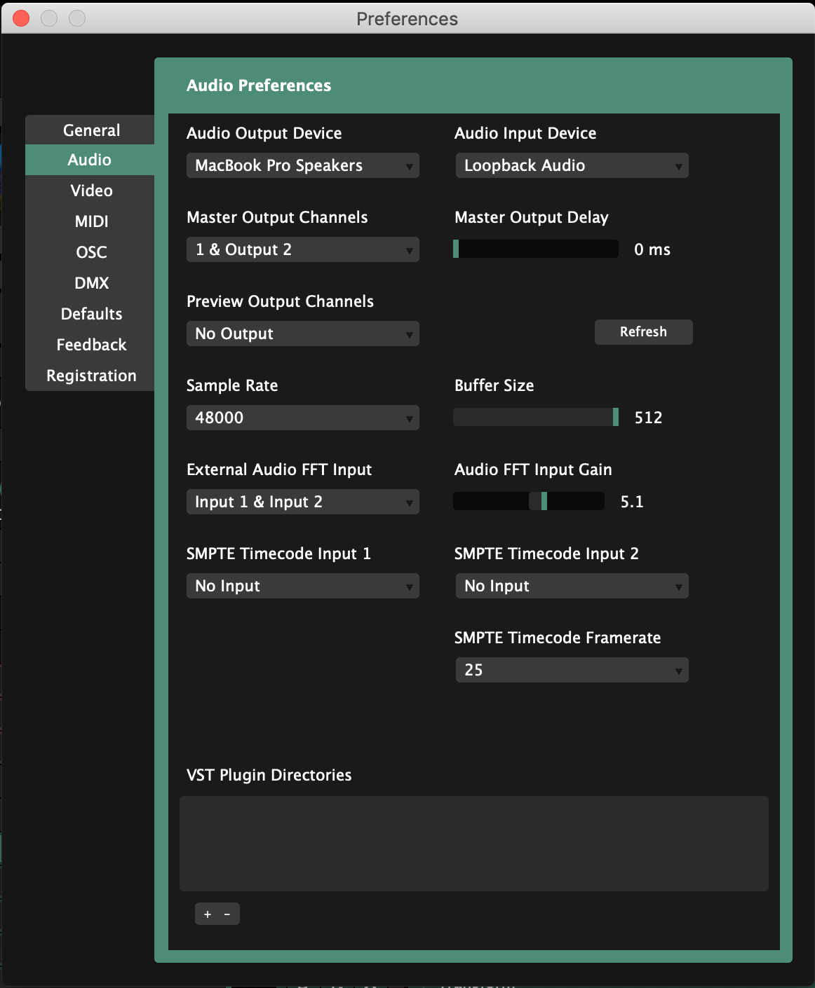Installed Loopback (latest version, but in Trial mode), runs great, audio playing. When I start Arena (7.0.5) with audio settings (see below) audio stops, although I can see the audio streaming through Loopback. When I change the External Audio FFT Input I get sound for a split second then nothing. Also if I create a new passthru source in Loopback, audio returns but it's not feeding into Resolume.