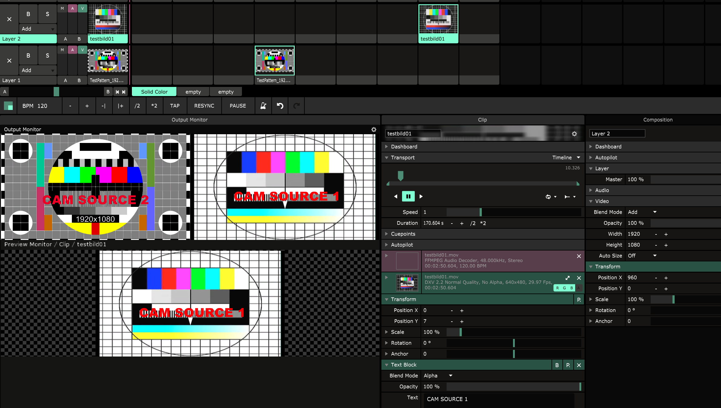Clips inisde the Layers are 1920x1080 and should now be side by side.