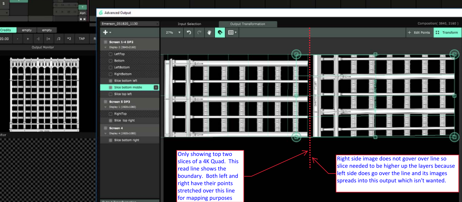 But when grabbing exact slices from a large video to be mapped using three projectors with edge blend, it becomes difficult. That was my issue when posting. I believe the answer is to scale down the content inside the layer/composition and overshoot with the projector. Simply because you can't have a slice over another slice. You need room to keep them separated. No?