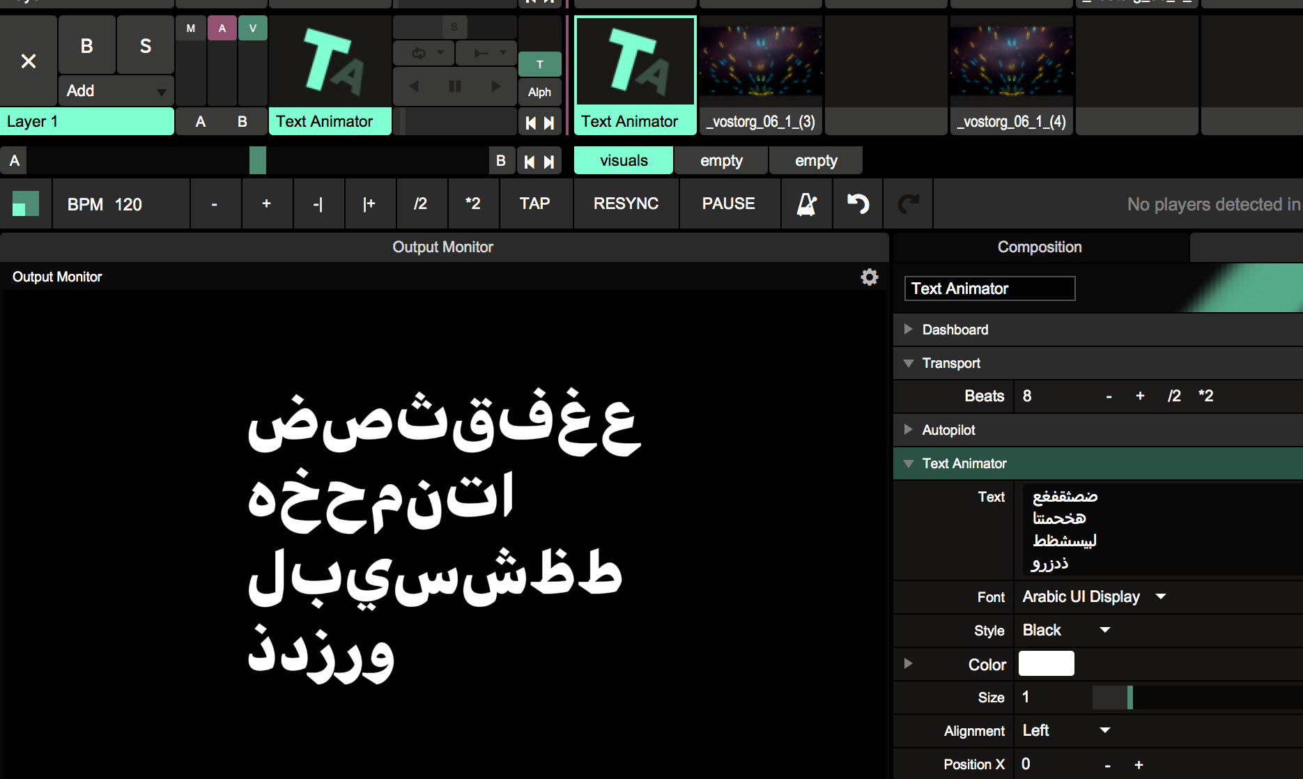 mariy wrote: Wed Jun 03, 2020 10:39 hello , I try to add Arabic language in arena resolume So I can write text in Arabic litters :?