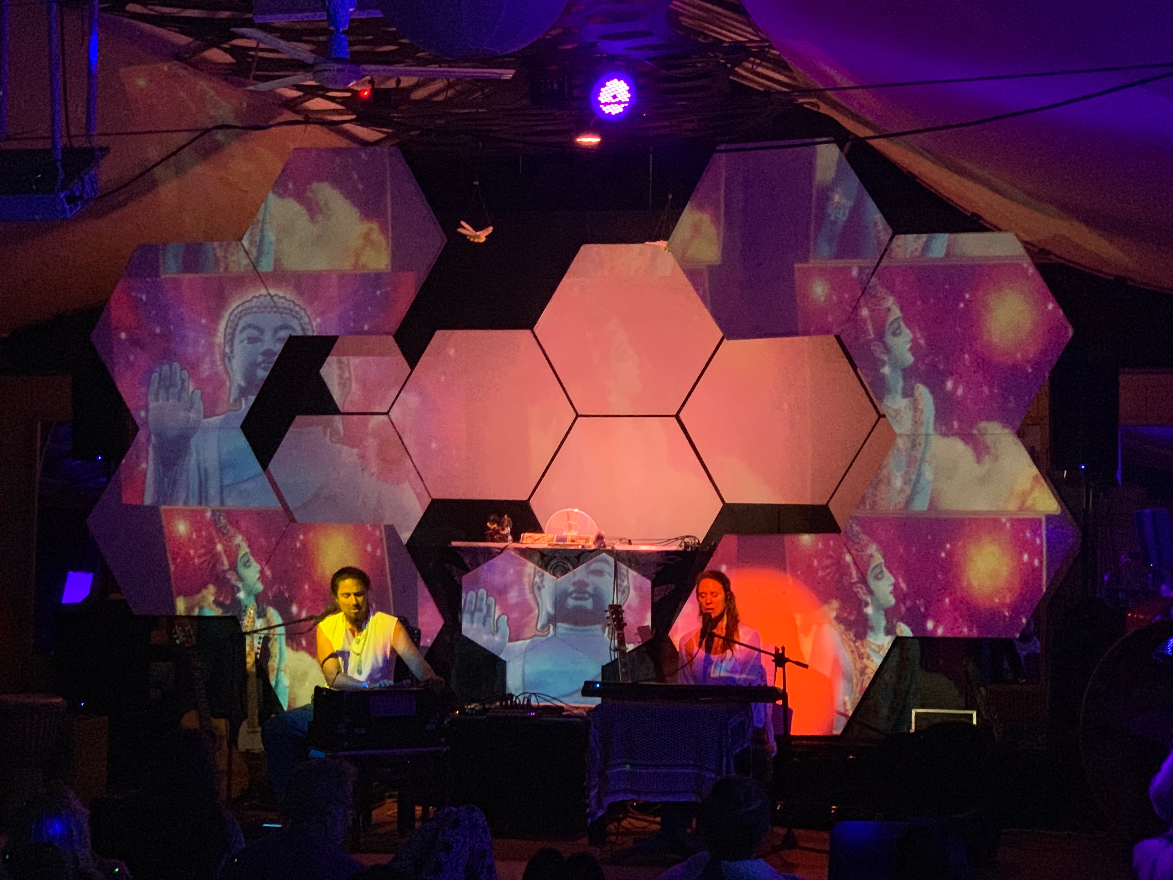 When I analyse your attached picture....the cheapest way to get a better projection is to ask the light technicians to place the lights that way that no or less light falls on your projection surfaces....