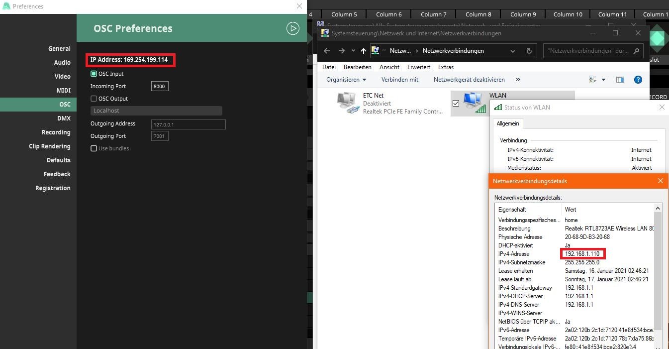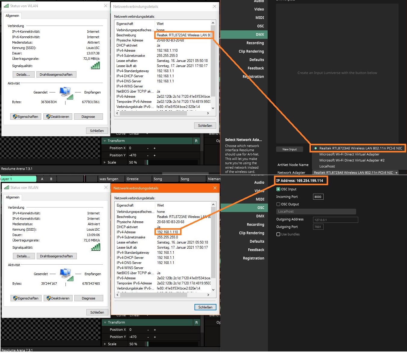 And Resolume ever choose a Non-Existadapter (i know 169.254.XXX.XXX is when Win10 find an IP Adress it is in use and "create" a "virtual" Second IP for this Adapter) for try connect.