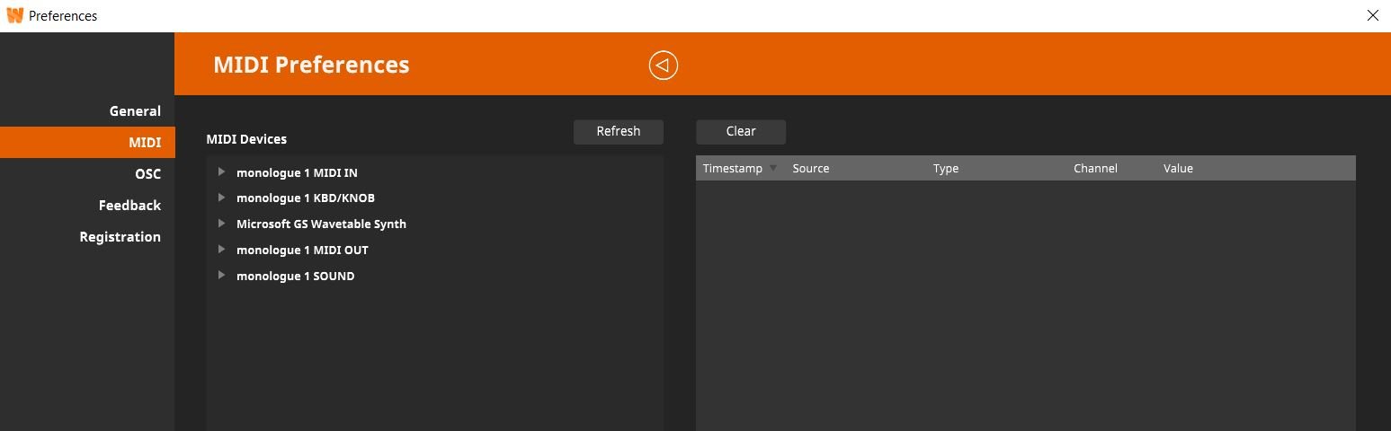 I have a Korg Monologue connected via USB to my PC. Drivers installed, It shows up as a MIDI device