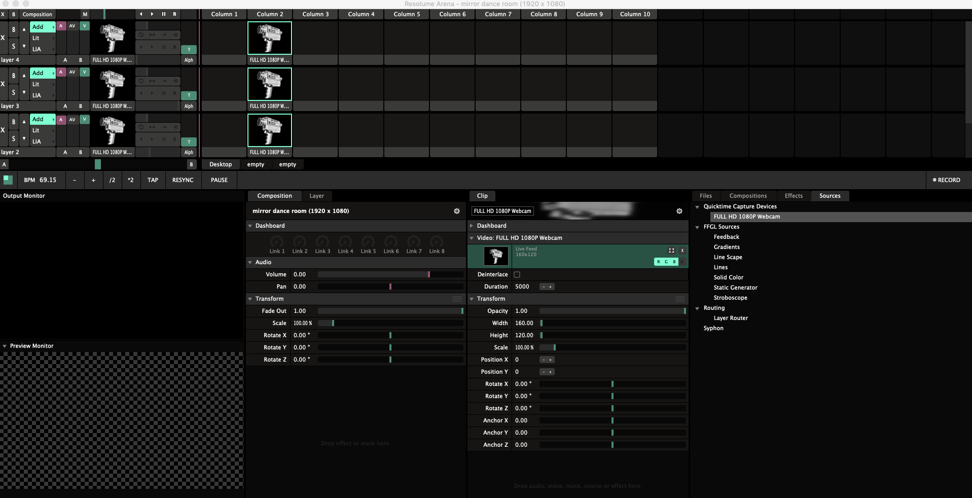 I am trying to use a webcam to feed into arena 5 but for some reason when I add the cam source into where a clip would be it just gives me a blank screen even once I have activated the clip. I have attached a screenshot showing what my problem is. This is on a mac, I have tried 2 webcams and restarted arena 5. I hope you can help as I don't know what to do. Many thanks!