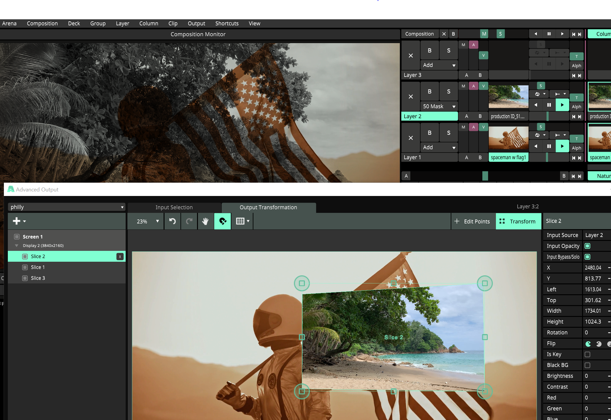 If I want to mask the overall output with layer that needs it's own slice controls, I'll turn that layer into a black overlay (auto-mask effect + levels).