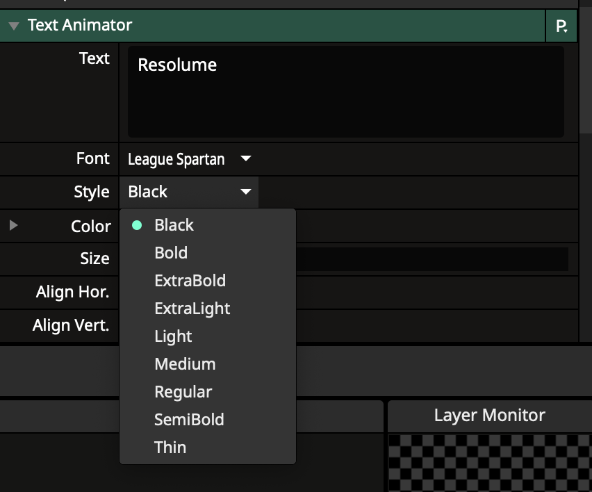 If you install 'LeagueSpartan-VariableFont_wght.ttf,' it's true that only 'Thin' will be displayed, but isn't that simply because Resolume does not support Variable Fonts? If you install the 9 independent TrueType fonts found in the 'static' folder, 'LeagueSpartan-VariableFont_wght.ttf' will be removed, and they will all be displayed as shown in the attached image.