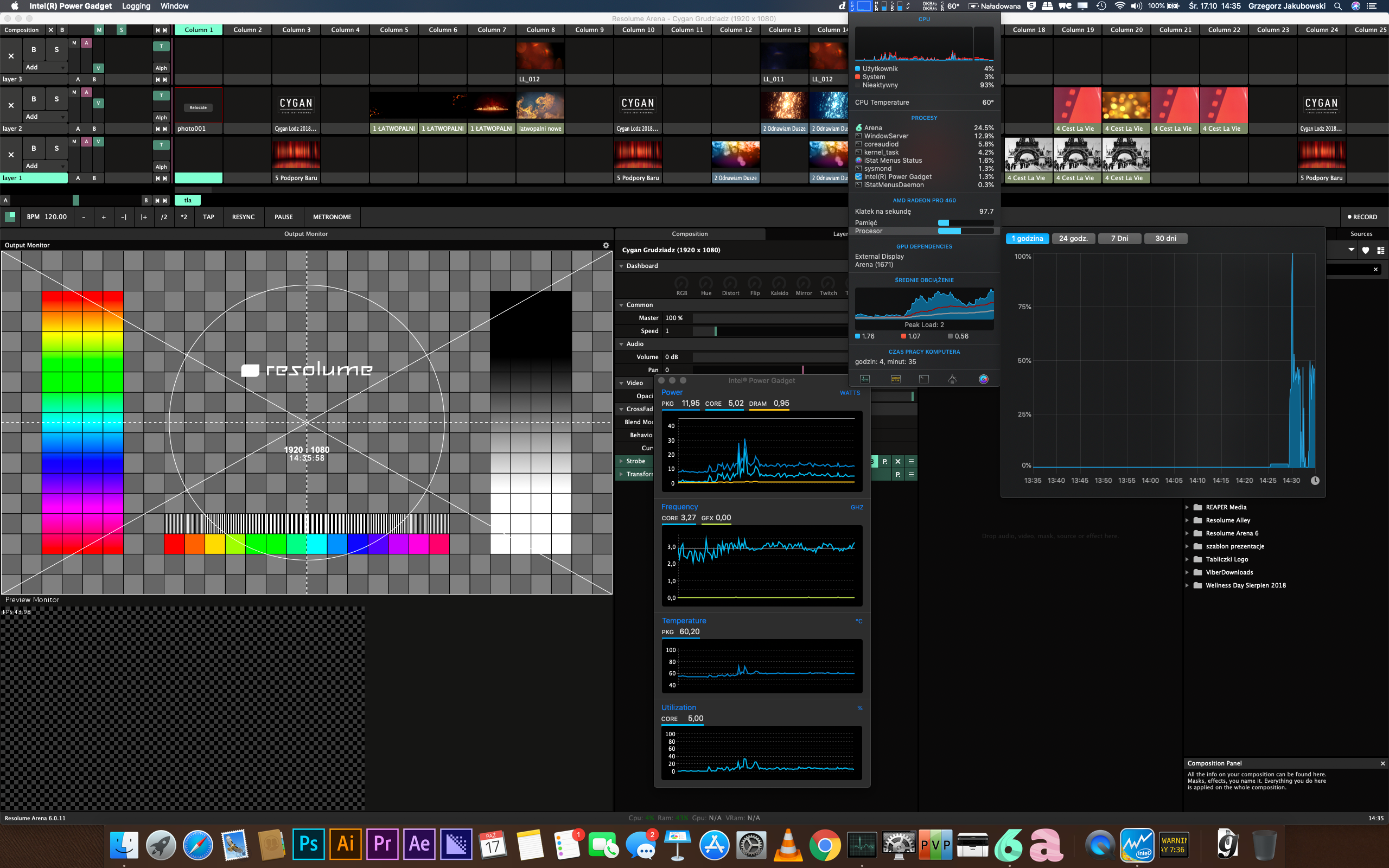 GFX jump from 0 beacouse of recorind, when its just resolume it show 0, but other app i-stats show that GPU is working on 100%.