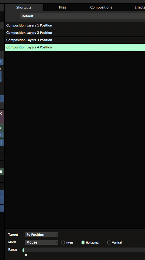 Next, I go to the SHORTCUTS tab and leave the setting at "POSITION," but change to "MOUSE."