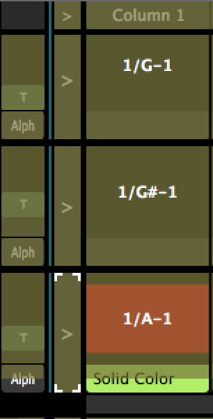 When I'm in midi mapping mode there is a button reveald between the transition time fader to the first clip on each layer and on the column and deck rows that marked ">" (Screenshot attached).