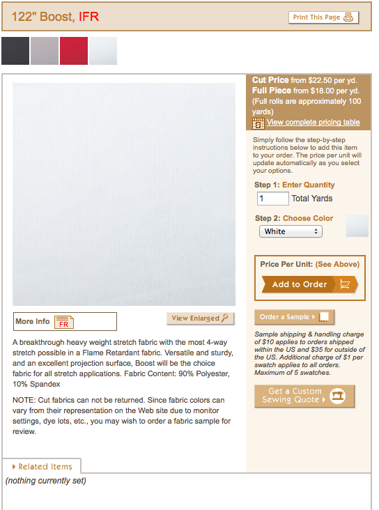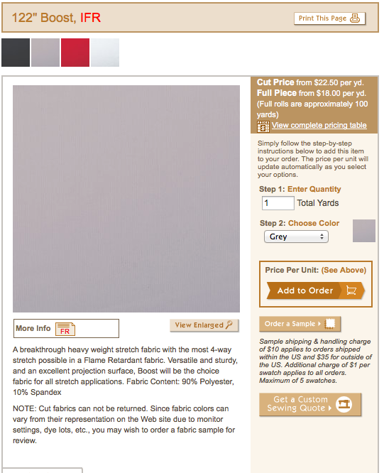 I will use a DLP Panasonic PT-DZ570U with 4K on shapes with a stretchy fabric. I'm debated between the white and the grey which I'm considering because I've been told that can be better for contrast.