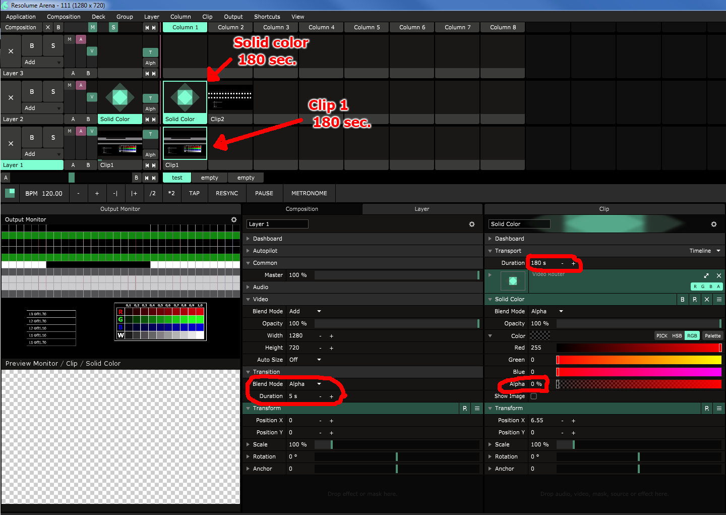 - If you want a 5 second transition, make your [Solid Color] clip 175 seconds and it should work.