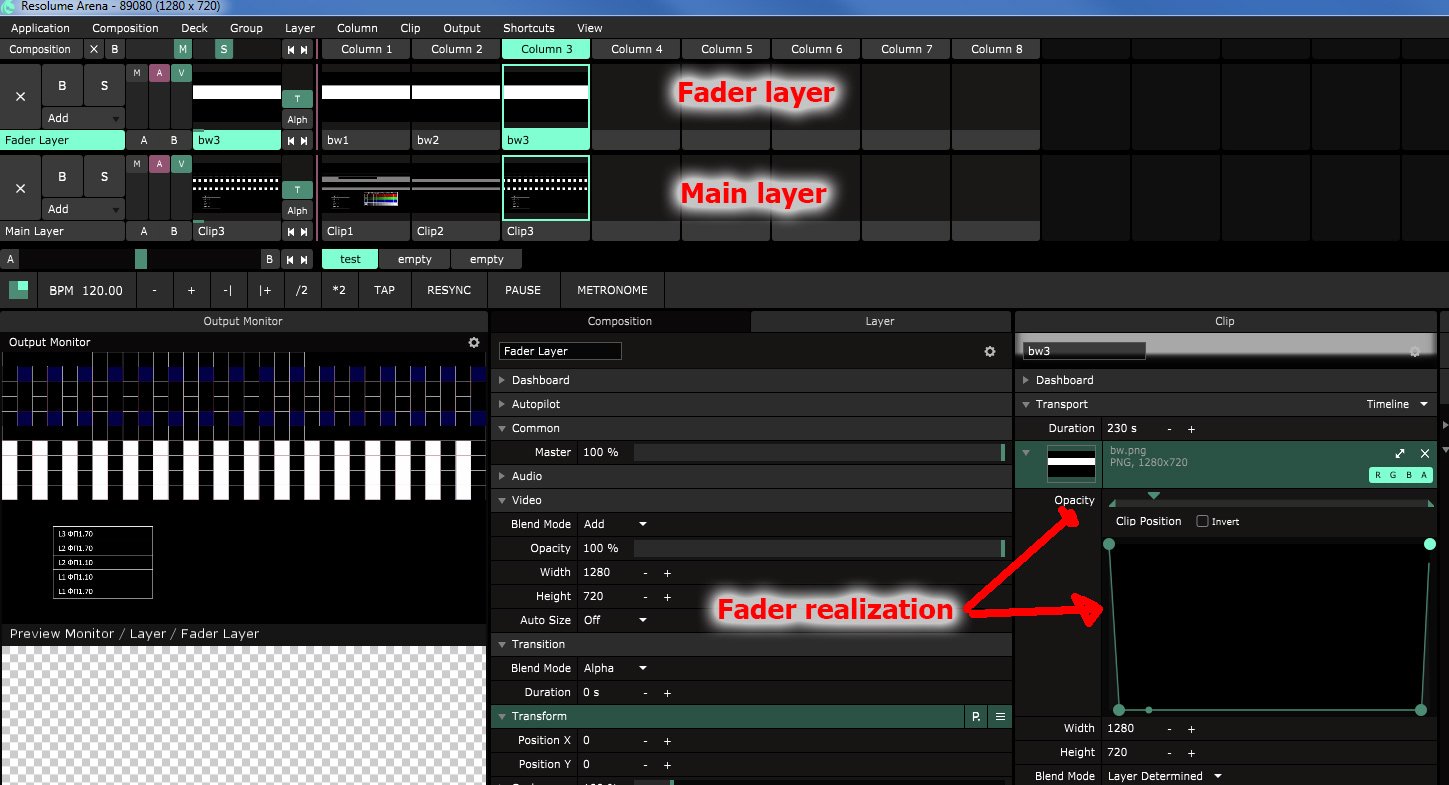 Main layer is my clips, and fader level is picture with duration of corresponding clip.