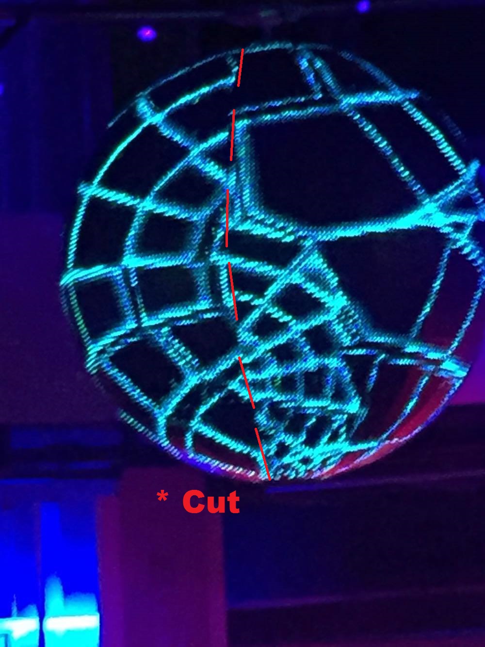 Pic of the ball: For the ball I have a problem, since it's a round shape, at somepoint I will endup having a cut, it's like a rectangular screen but just with a different shape...