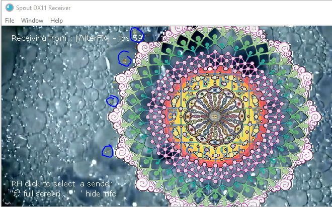 Spout output of mandala but with the video outside the mandala and pixel errors